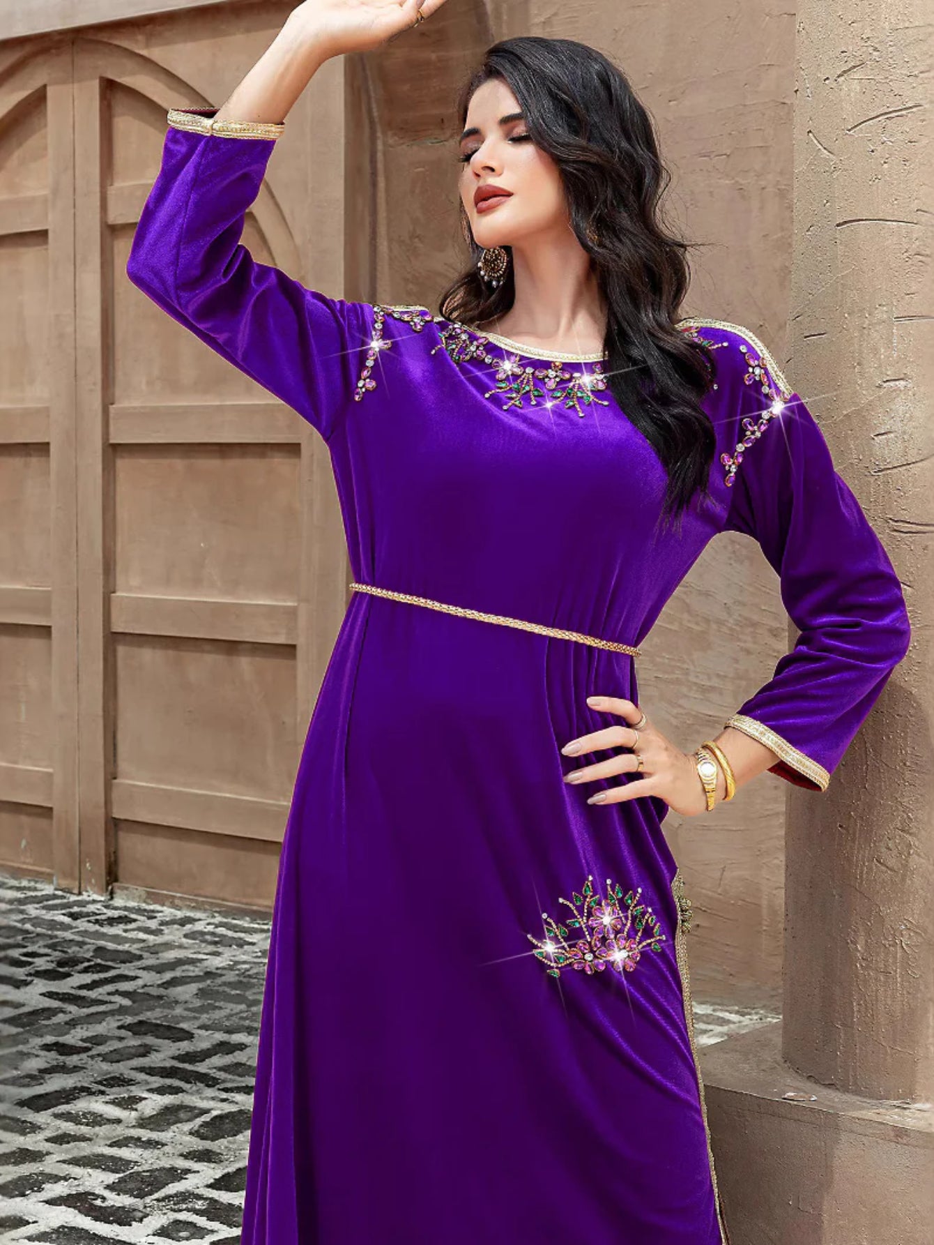 BA5164 Purple velvet long-sleeved split skirt